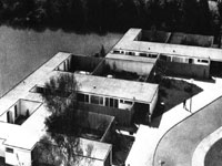 Eduard Ludwig studierte von 1928 bis 1932 am Bauhaus Dessau. Beim Bungalow nutzte er das räumliche Konzept der kontinuierlichen Wand als raumbildendes Element. Die einfache Anordnung von Wohnung, Garage und Garten in einer Überschneidung zweier Rechtecke ergibt ein Modul, das eine Häufung, eine sogenannte „Teppichbebauung“ vorstellbar macht. Hinter den zunächst abweisend wirkenden Einfriedungen liegen Gartenhöfe, die ihren Bewohner*innen ein ungewöhnliches Maß an äußerer Abgeschlossenheit und innerer Freiheit inmitten der Großstadt bieten.