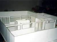 In den 60er und 70er Jahren wurden Mobilität und Individualität ein gesellschaftliches Thema. Die Architektur reagierte darauf mit der Vorstellung permanenter Gerüste mit wechselnden Einbauten: Dieses Verfahren, indem die neutrale Struktur das Regelmäßige und Bekannte repräsentiert, ihre Ausfüllung dagegen einen Spielraum für Aktivität und Originalität freihalten soll, nehmen wir in unser Konzept auf. Da die Wahl unserer Möglichkeiten sich nicht nur innerhalb des Systems bewegt, sondern auch das System selbst in Frage stellt, sprengen wir die architektonischen Vorgaben.