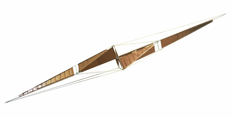 Die Skulptur suggeriert ein raumgreifendes energetisches Zentrum mit einer vorstellbaren Verbindung zu einem Außen. Auf 22 Quadratmetern wird die kalkulierte Multifunktionalität zum Alptraum.