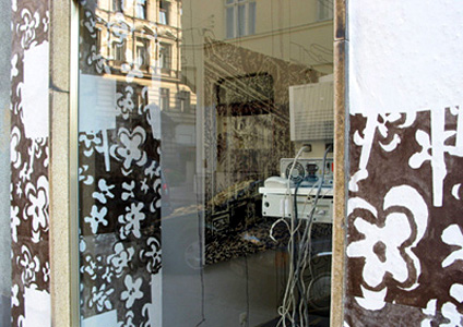 Sessel, Aquarell, Installationsansichten (Plakate, Siebdruck), Detail tapeziert