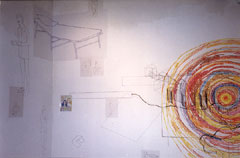 o.T., Acryl und Filzstift auf Wand, ca. 180 x 300 cm, Raumansichten und Entwurf