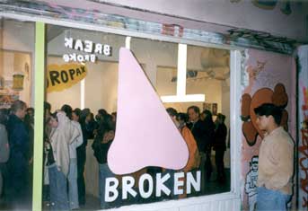 Die gelbe Straßenmarkierung läuft über die Innenwand des Raumes und die Außenwand des Objektes. Bei Reflexion ist die Raumtiefe nicht mehr wahrnehmbar.